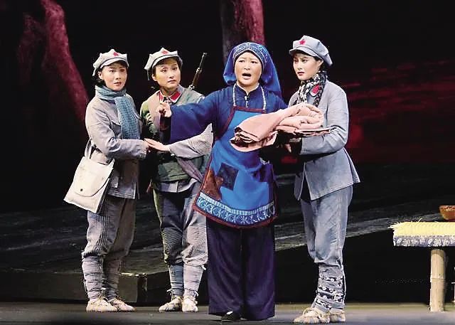 ▲演员通过京剧艺术形式讲述“半条被子”的故事。任珑摄