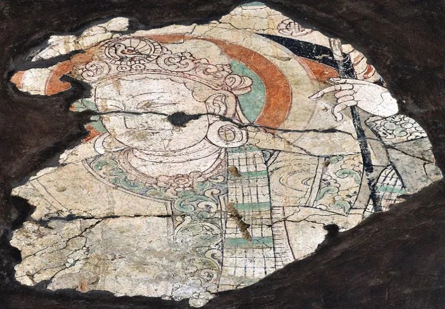 ▲于阗毗沙门天王像壁画。(图片来源:《丝路梵相:新疆和田达玛沟佛教遗址出土壁画艺术》,上海书店出版社2014年)