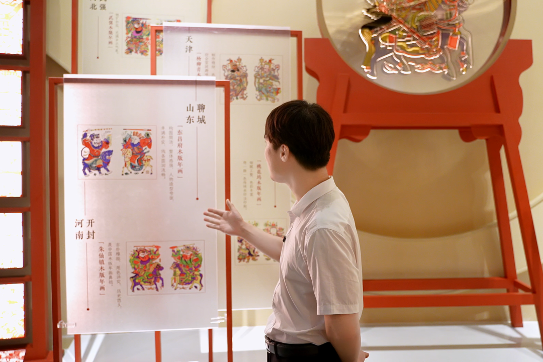 通过讲解员的介绍,游客们在自然舒适的旅游体验中,潜移默化地受到铸牢中华民族共同体意识的教育:“这边您看到的是朱仙镇木版年画,它是木版年画的鼻祖。由于运河之水的沟通,把木版年画带到了全国各个地方,并与当地文化相结合,呈现出不同的表现方式。比如桃花坞木版年画,它的特点是细腻工整,色彩丰富;东昌府的木版年画,它的特点是构图简洁,整体感非常强;还有咱们河北武强的年画,它的特点是粗犷朴实,充满乡土气息。”