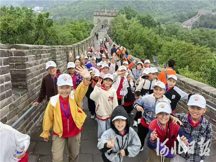 今年5月,“石榴籽一家亲——冀疆少年手拉手高举队旗跟党走”研学活动走进北京,巴州少年登长城。唐焱摄