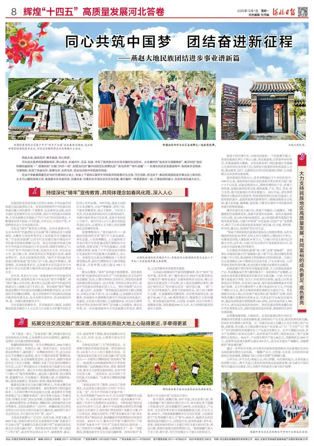12月1日,《河北日报》“辉煌‘十四五’高质量发展河北答卷”专版刊发《同心共筑中国梦 团结奋进新征程——燕赵大地民族团结进步事业谱新篇》,以下为文章全文。