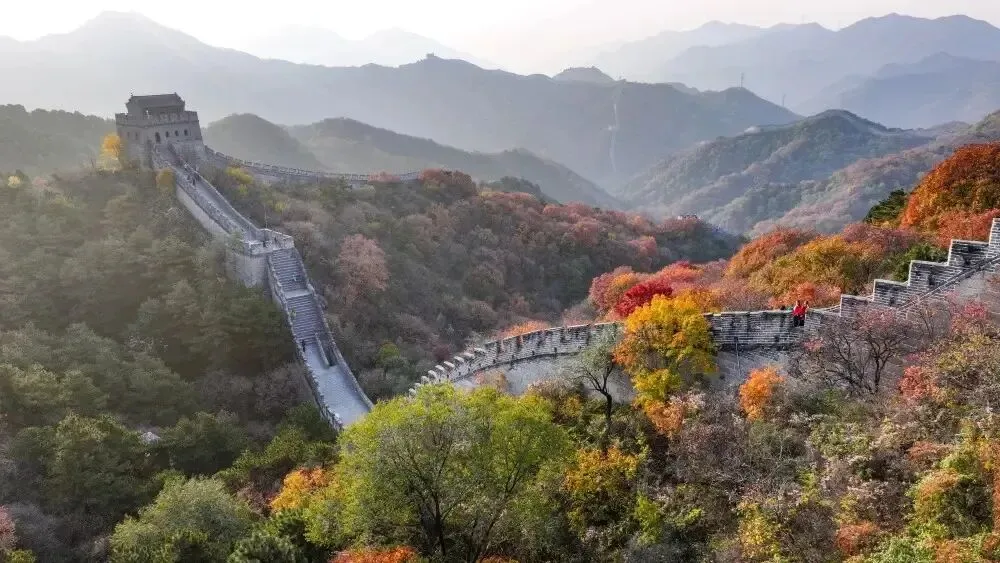 ▲长城是中华民族兼容并蓄、坚韧不拔、自强不息的精神坐标。图为秋日早晨拍摄的八达岭长城(无人机照片,2024年10月29日摄)。新华社记者 陈晔华 摄