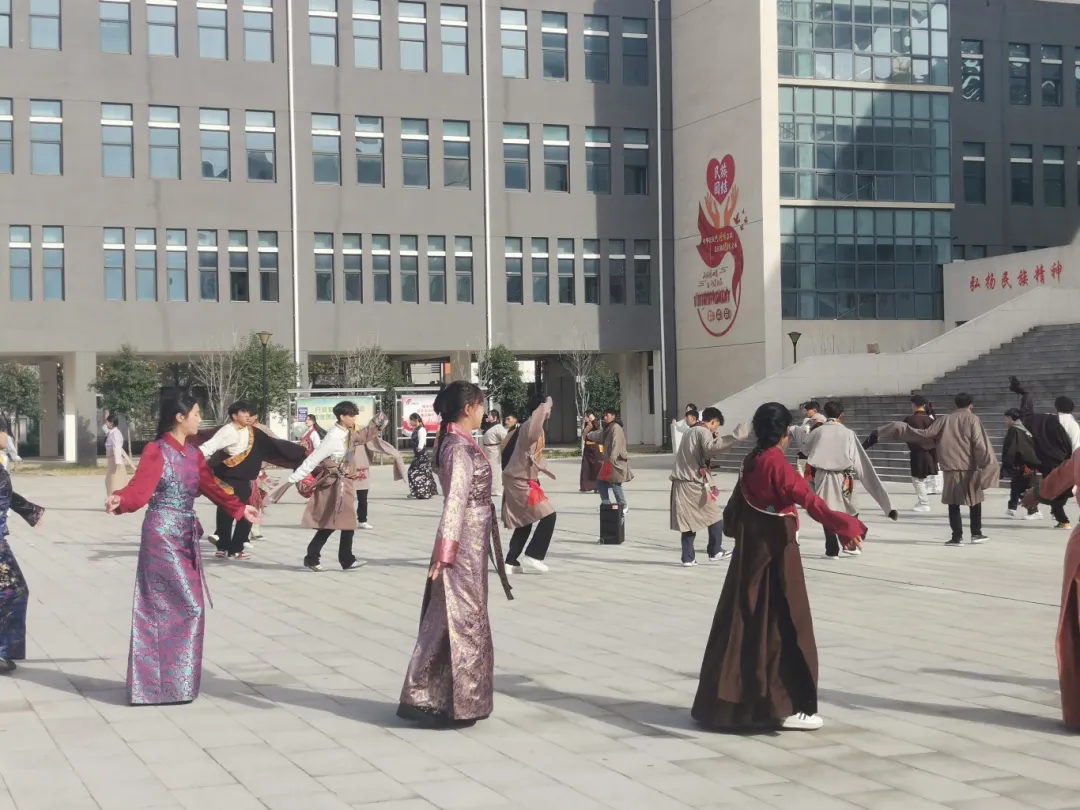 初冬时节,寒意渐浓,但邢台现代职业学校的石榴园广场却洋溢着似火的热情。伴随着欢快的音乐节拍,藏汉学生围成圆圈,手拉着手,肩并着肩,踏步、旋转,宛如一条绚丽的彩带在校园中流淌。“每周孩子们都要在一起载歌载舞,传递快乐与团结。”说罢,邢台现代职业学校教师樊丽丽也加入舞蹈队伍。