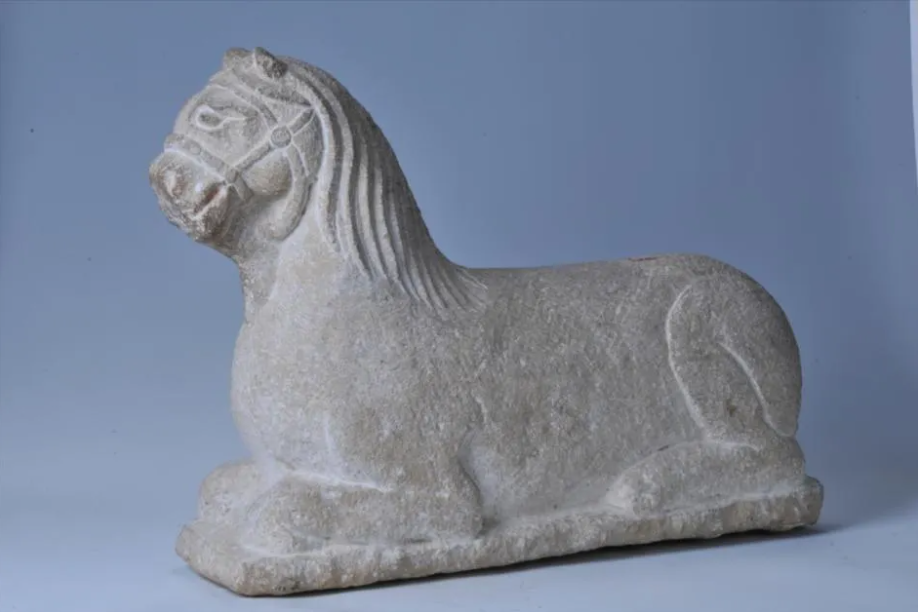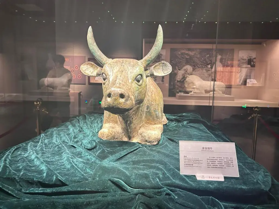 ▲西夏陵出土的石马和鎏金铜牛在宁夏博物馆同一展厅展出,见证千年前游牧与农耕文明交融。(图片来源:新华社)
