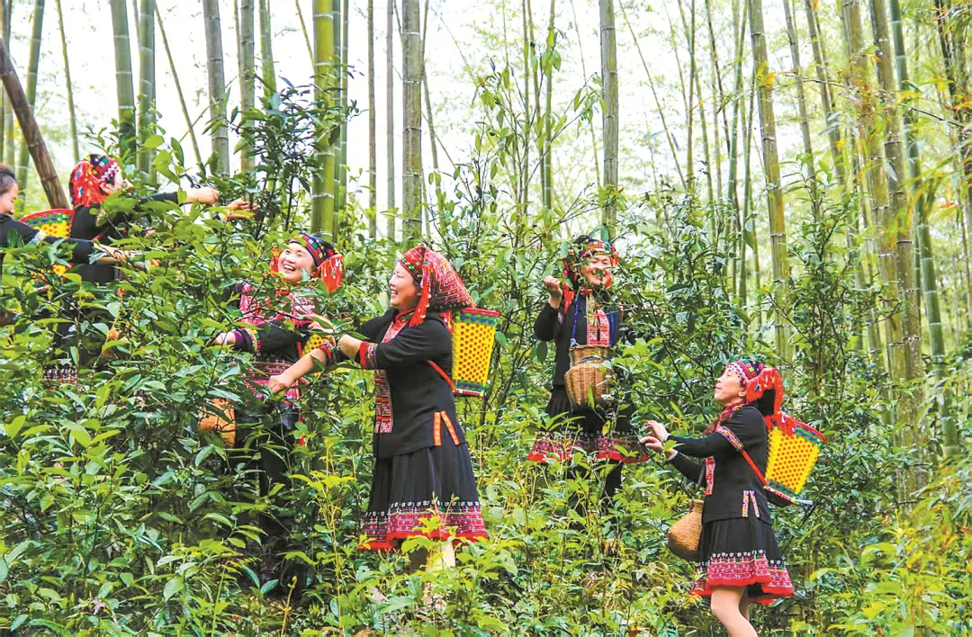 ▲广西兴安县林下野生六垌茶采摘。 桂林市林业和园林局供图