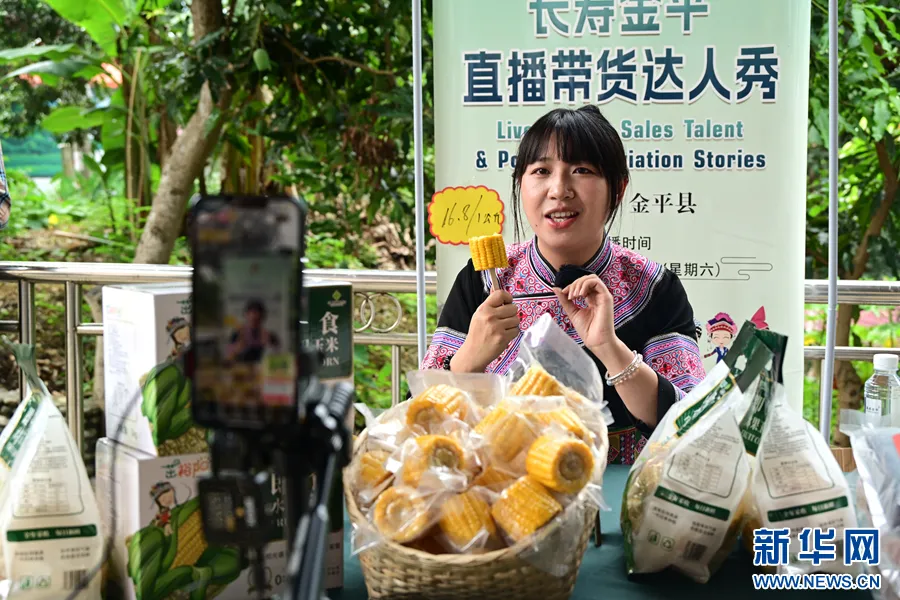 ▲2025年5月10日,云南省金平苗族瑶族傣族自治县“直播带货达人秀”脱贫经验分享活动现场,主播正在进行直播带货。新华网发(刘起 摄)