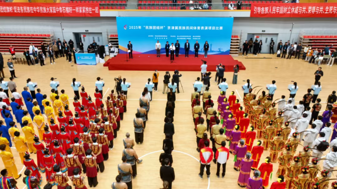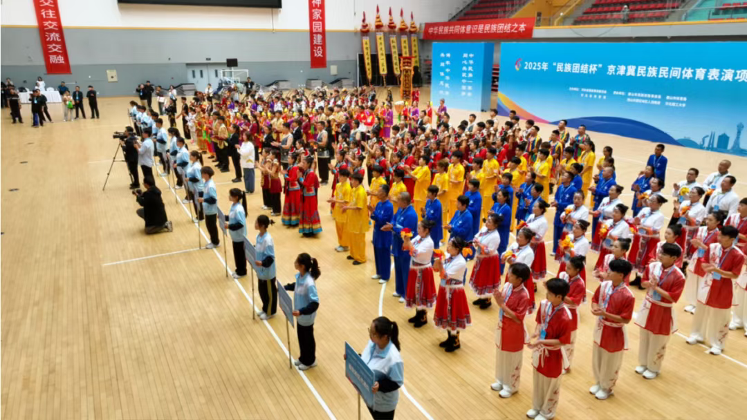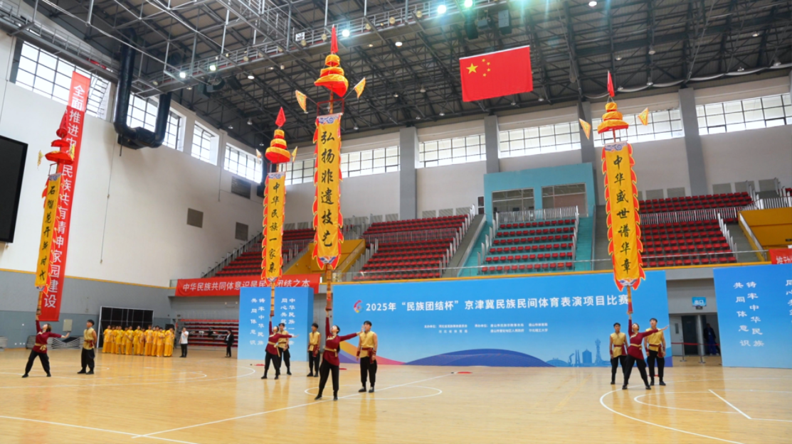 2025年9月24日至25日,由河北省民族事务委员会、河北省体育局主办,唐山市民族宗教事务局、唐山市体育局、唐山市曹妃甸区人民政府、华北理工大学承办的2025年“民族团结杯”京津冀民族民间体育表演项目比赛在华北理工大学举办。来自北京市、天津市,以及河北省10个地市、雄安新区的近300名各族运动员、教练员、裁判员及工作人员齐聚渤海之滨,共赴这场以体育为媒的民族团结盛会。