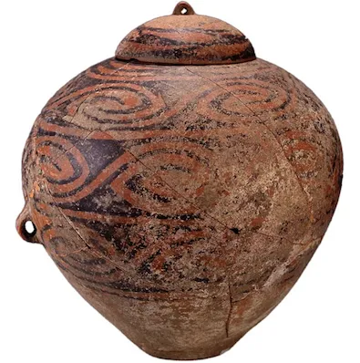 ▲彩陶盖瓮,红山文化晚期(距今5500—5000年),辽宁省文物考古研究院藏。(图片来源:澎湃网)位于蒙古高原南部边缘鄂尔多斯地区的朱开沟遗址,是揭示中国北方地区从原始农业向游牧转变过程的关键遗址。以鄂尔多斯青铜器为代表的我国北方游牧民族文化,即是在朱开沟文化的基础上逐步发展起来的。该遗址与中原文化也有着密切的联系。