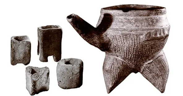 ▲朱开沟遗址出土陶杯、陶盉。(图片来源:鄂尔多斯市地情网)