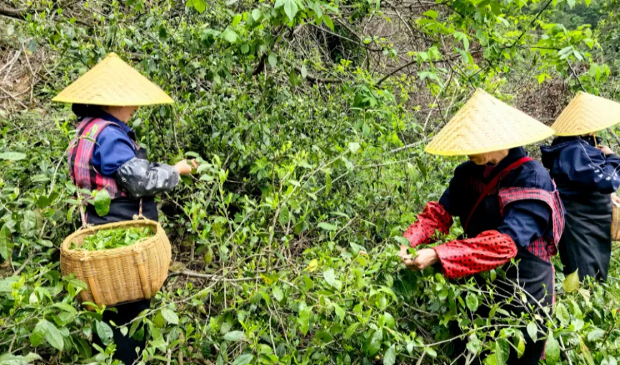 ▲ 2025年4月26日,村民在清凉峰竹龙潭茶叶基地采摘高山茶。新华网发 陈张洋 摄
