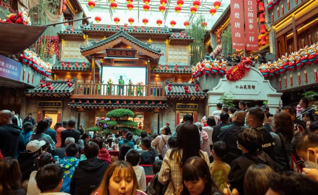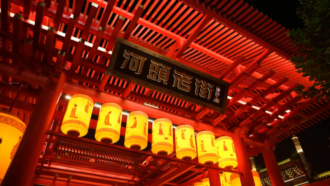 告别唐山宴,约三十分钟车程,便抵达另一片灯火辉煌的天地——河头老街。登上盛世码头的游船,随船移步换景,两岸唐风灯笼、楼宇连绵不绝,让人仿佛在历史长河中悠然徜徉。最令人叹为观止的是大型实景演出《唐王东征》:在宽阔的河道上,战船浩荡,唐王仪仗威武前行,耳边战鼓隆隆,眼前还有非遗“打铁花”如流星划破夜空,惊险的马术杂技扣人心弦。这场演出已不仅是一场表演,更是一次深度的传统文化洗礼,让京津冀游客在震撼之中,切身感受到中华民族深厚的历史文化底蕴。