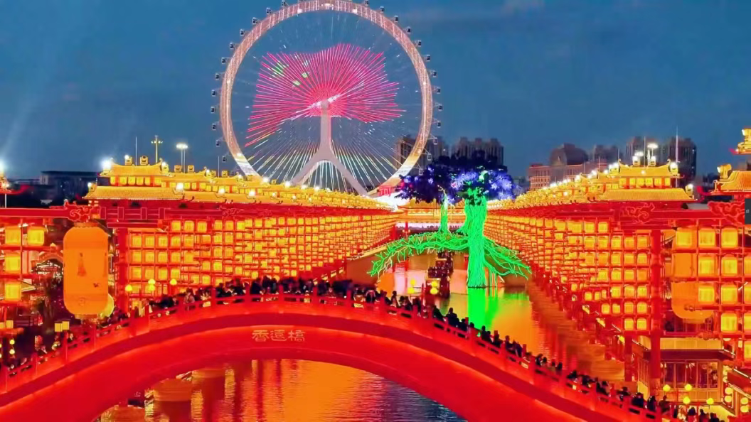 游船行至桥下,一座水上摩天轮跃入眼帘。斑斓夜色中,这座被誉为“唐山之光”的摩天轮,与海河畔的“天津之眼”遥相呼应。“眼前这条运河曾是连接唐山与天津的人工运煤水道,”河头老街景区行政服务部赵凯介绍,“在岁月的长河里,河头老街不仅输送过唐山的煤炭资源,还承载着三地绵延不绝的交往交流交融史。”