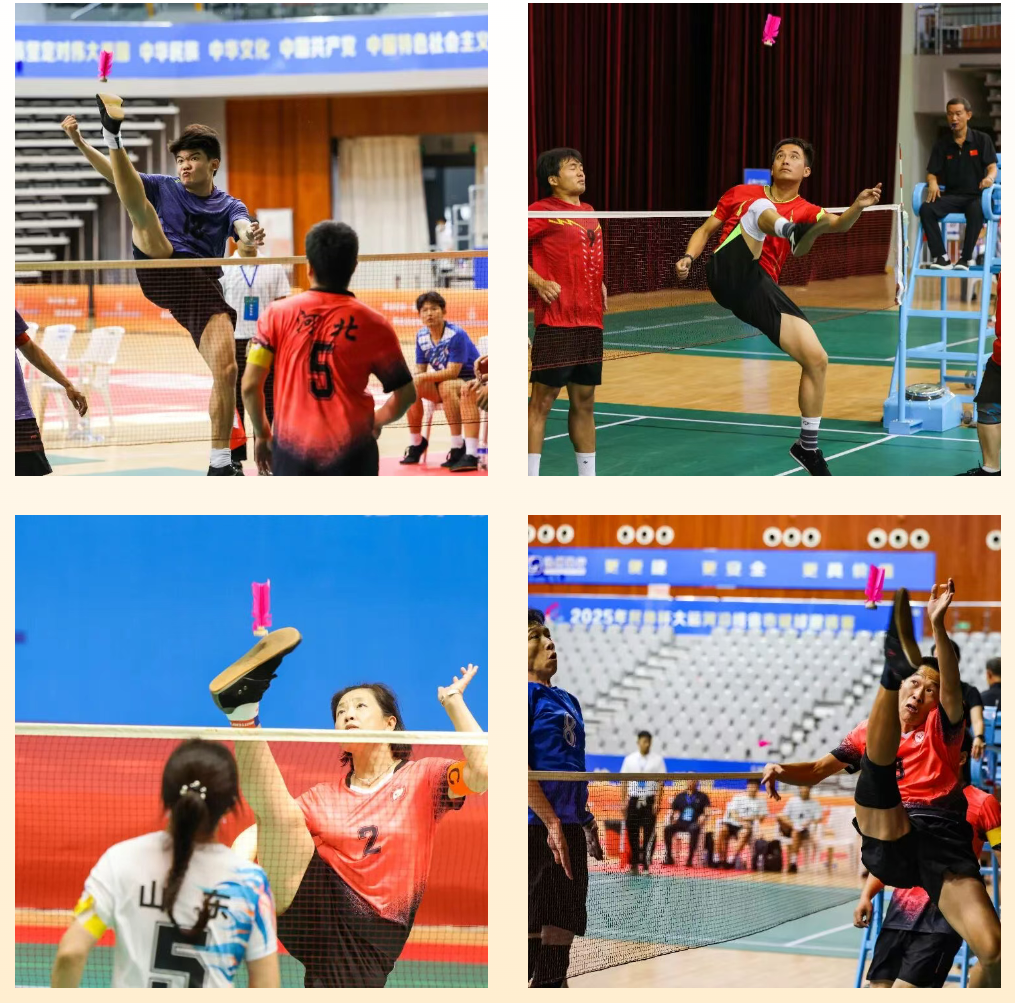男子三人赛决胜局将全场气氛推向高潮。河南队与山东队展开激烈角逐,双方比分交替上升,关键时刻,河南队主攻手以一记贴网“双飞”完成绝杀,毽球划出优美弧线应声落地,赢得阵阵掌声。