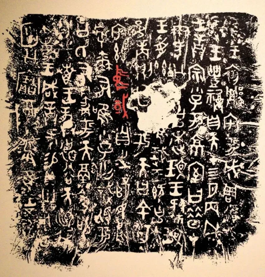 ▲宝鸡青铜器博物院内展出的何尊铭文拓片。“中国”二字的首次连用,就出现在这件铸造于公元前1038年的何尊中。 宝鸡青铜器博物院供图