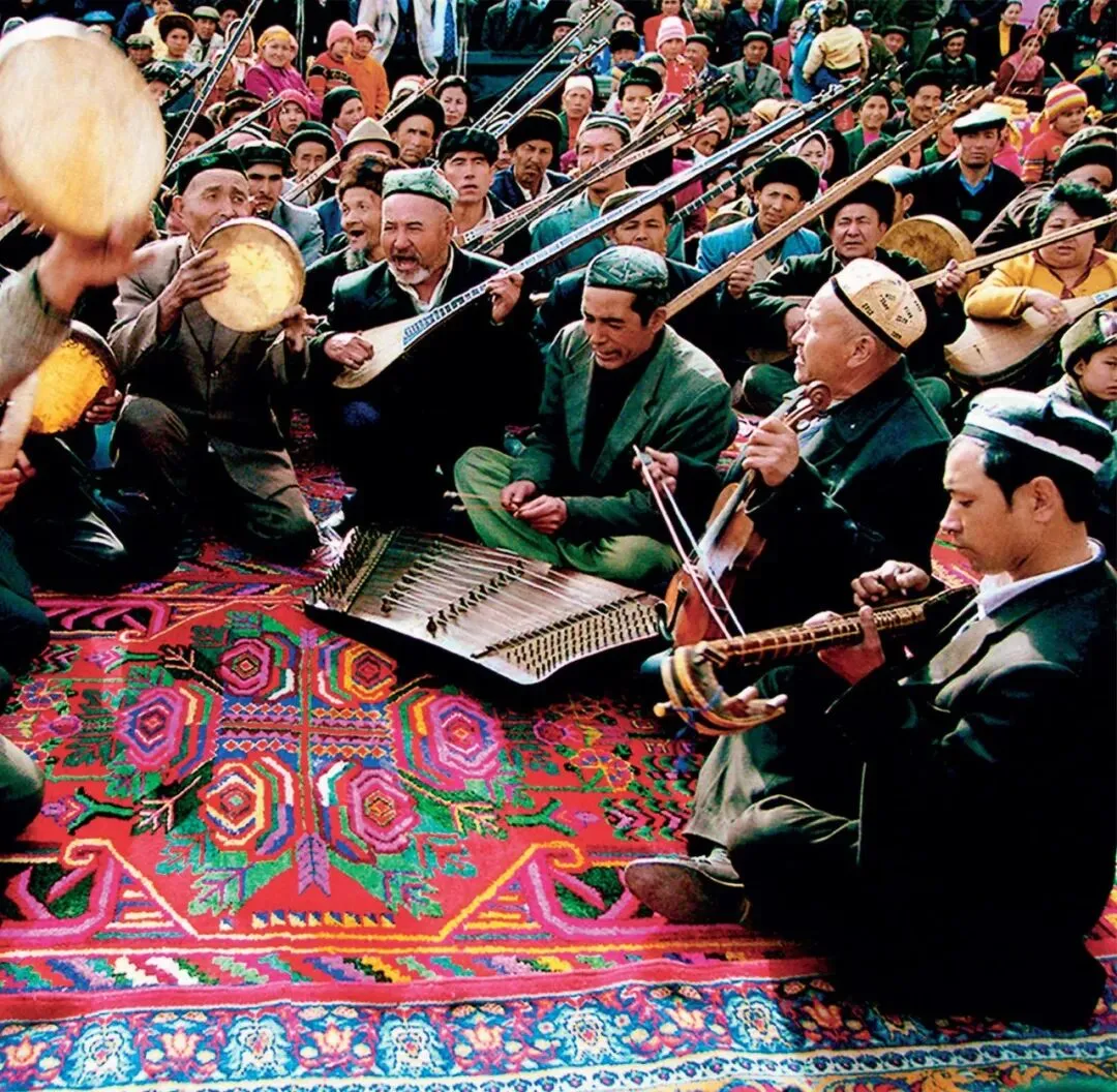 ▲新疆民间艺人在表演十二木卡姆。艾力肯 摄