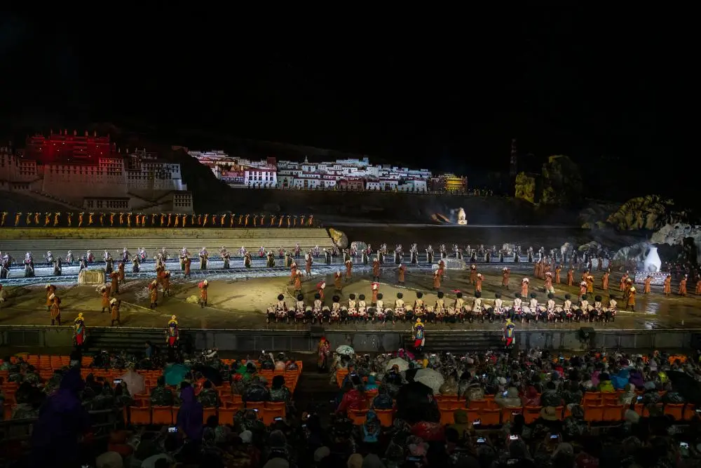 ▲2023年6月15日拍摄的大型实景剧《文成公主》的表演现场。新华社记者 孙非 摄
