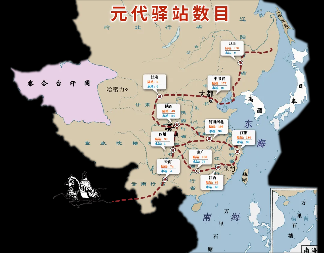 很多人看到这段历史,都会疑惑:一位古稀老人,是如何完成如此漫长艰险的远行,抵达万里之外的阿富汗?这就必须提到元代建立的“站赤”制度了。