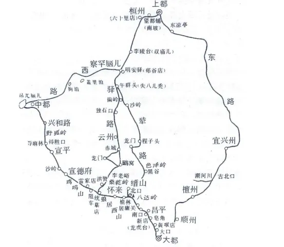 据波斯史学家拉施特《史集》记载,当时从岭北行省(蒙古高原)通往元上都(今内蒙古正蓝旗)、大都(今北京)的核心驿道主要有三条: