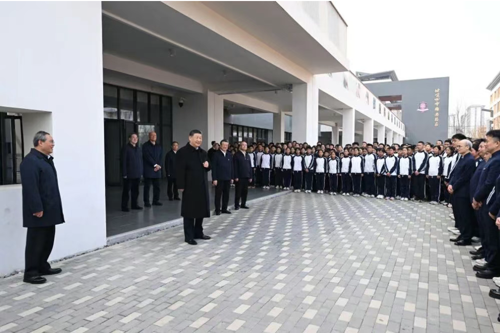 3月23日,中共中央总书记、国家主席、中央军委主席习近平在河北雄安新区考察,并主持召开深入推进雄安新区高质量建设和发展座谈会。图为23日上午,习近平在北京四中雄安校区考察时,同师生亲切交流。新华社记者 谢环驰 摄