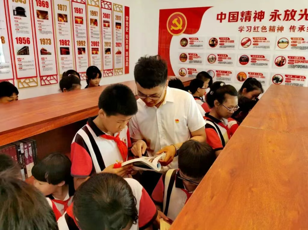 羊四村党支部书记万俊男向小学生宣介中华民族共同体意识。