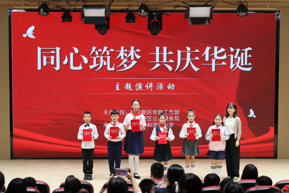 在雄安容和悅容小学举办“同心筑梦 共庆华诞”民族团结进步主题演讲比赛。