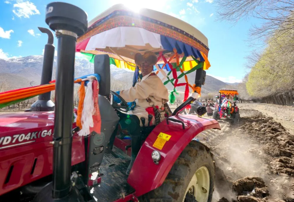 ▲3月16日,西藏各地农区举行春耕大典。在山南市结巴乡结巴村,200多位村民身着盛装,按照传承千年的春耕民俗,举行春耕仪式。(图片来源:新华社记者 晋美多吉 摄)